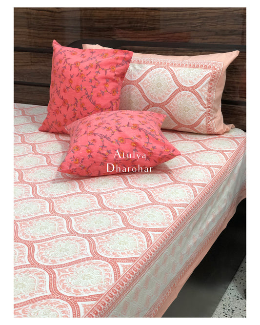 Pinkish Red Mughal Jaal Cotton Super King Bedsheet